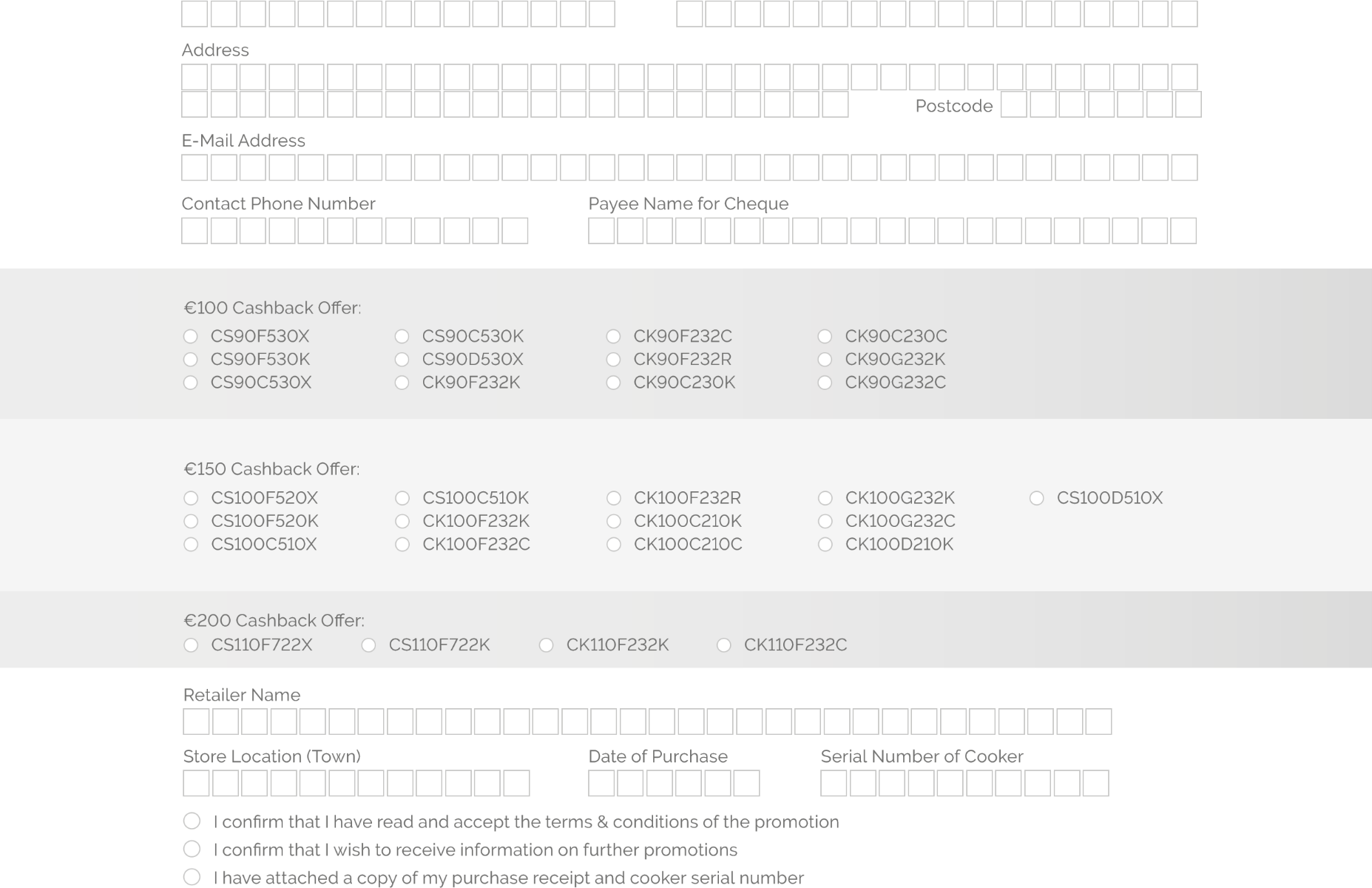 Leisure Range Cashback Claim Form